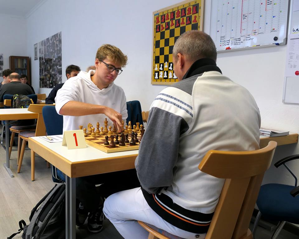 Am 21. September 2025 bestritt der SF Birkenfeld sein erstes Spiel in der 2. Rheinlandpfalz-Liga, man musste auswärts bei der Mannschaft vom SC Bellheim antreten. Und eigentlich ging es sehr gut los: Da Niklas Leyendecker mit Svetlin Stojanov (DWZ 2227) einen DWZ-Riesen als Gegner hatte, war er schon nach der Eröffnung mit einem Remis zufrieden. Es blieb weiter positiv, da Joachim Leiser seinen Gegner Thorsten Dantes (DWZ 2032) in einer spektakulären Partie niederkämpfte. Eigentlich sah es so aus, als ob Joachim im Mittelspiel einen Turm verloren hatte, aber der Gegner hatte nicht rochiert, Joachims Figuren wirbelten im gegnerischen Lager umher, am Ende setzte er matt. Sehr starkes Ergebnis, Brett 1 und 2 holten gegen starke Gegnerschaft 1,5 Punkte. Als dann noch Milan Schneble gegen Jan Wilk (DWZ 1817) auf 2,5 zu 0,5 erhöhte, durfte man sich tatsächlich berechtigte Hoffnungen auf einen Auswärtssieg machen, umso mehr, da Emil Bleisinger gegen Rainer Zwick (DWZ 1969) tatsächlich eine ganze Leichtfigur mehr hatte. Allerdings übersah Emil bei fortgeschrittenem Mannschaftskampf eine einfache Taktik seines Gegners und fand sich plötzlich in einem Endspiel mit gleichem Material wieder. Mehr als ein Remis war nicht mehr herauszuholen. Jetzt hatten wir immerhin 3 Punkte.