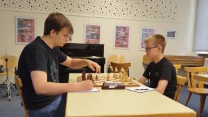 In der 5. Runde trennten sich Fynn und Joachim remis; Joachim hatte in dieser Spitzenpartie mehr vom Spiel gehabt, musste aber zuletzt in einem Endspiel mit Türmen und jeweils einer Leichtfigur sogar kleinere Schwierigkeiten überwinden um das Gleichgewicht zu halten. Die Punkteteilung bot Leon die Chance, wieder gleichzuziehen, doch auch er kam (gegen Svenja Samson) nicht über ein Remis hinaus, mit dem er sogar noch hochzufrieden sein konnte. In Runde 6 setzte sich das Muster fort: Leon unterlag Zixuan, während Joachim die Chance auf eine Vorentscheidung verpasste und gegen Stephan mit Weiß nur ein Remis erzielte. Zu seinem Glück erwies sich Svenja auch in dieser Runde als Favoritenschreck und nahm Fynn einen weiteren halben Punkt ab.