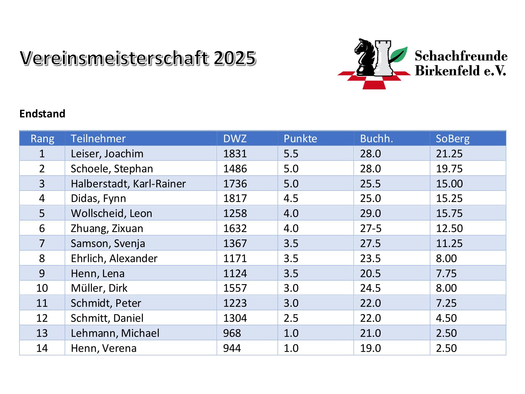 Vereinsmeisterschaft der Schachfreunde Birkenfeld 2025 – Ein Turnier wie ein Krimi