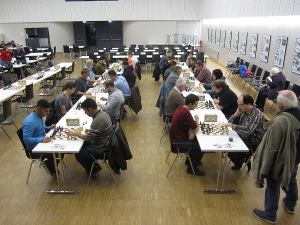Das Schnellschachturnier am Umwelt-Campus, im Rahmen der UCB-Initiative „Welcome Refugees“, war ein rundum gelungenes Event. Auf Einladung von Mahmoud Dawabsha und seinem Team, nahmen 26 SpielerInnen am ersten Schachturnier am Umwelt-Campus teil! Das Teilnehmerfeld setzte sich ungefähr zu je einem Drittel aus Studierenden & Mitarbeitern des Umwelt-Campus, aus Flüchtlingen und aus Birkenfelder Vereinsspielern zusammen. Am Ende setzten sich (größtenteils) die Favoriten durch, doch gewonnen hatten bei diesem interessanten Turnier am Ende alle.