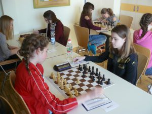 Doch die Entscheidung wurde noch einmal vertagt: Der große Respekt beider Spielerinnen voreinander und die Tatsache, dass beide seit Katharinas Einsätzen als Gastspielerin in der Mannschaft von Konz-Karthaus befreundet sind, führte zu einem Remis nach 14 Zügen und der „Verlängerung“ in Form zweier 10 Minuten-Partien. Solche Stichkämpfe sind nicht nur eine Sache der schachlichen Fähigkeiten, sondern auch der Nervenstärke und des Glücks. Katharina legte mit einem Sieg vor, aber in der zweiten Partie war Sophie nahe am Ausgleich, als wenige Züge vor dem Matt ihr Blättchen fiel. Was sich über 7 Runden angedeutet hatte, wurde auch hier noch einmal deutlich: Beide Spielerinnen sind vollkommen auf Augenhöhe, über Sieg und Niederlage entscheidet nur ein Wimpernschlag. Der Titel geht – trotz des engen Verlaufs – nicht unverdient an Katharina, die damit das Kunststück fertigbringt, sowohl 2016 als auch 2017 alle Titel im Turnierschach ihrer Altersklasse zu gewinnen. Es wäre aber Sophie zu wünschen, dass sie für die nächsten deutschen Jugend-Einzelmeisterschaften im Juni in Willingen einen Freiplatz erhält und zusammen mit Katharina unser Bundesland vertreten kann.