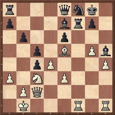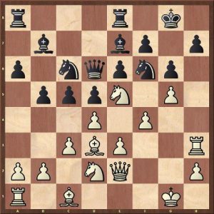Samira steht mit den schwarzen Steinen hier schon stark unter Druck, nach 14…Sh5? ist die Partie verloren.
