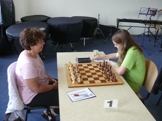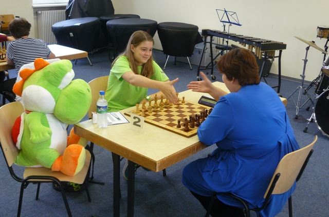Sportlich waren die Rollen klar verteilt. Eindeutige Favoritin war die Zweitbundesligaspielerin Julia Krasnopeyeva aus Mainz (DWZ 1870) mit mehr als 400 DWZ-Punkten Vorsprung auf Christina Marx (Koblenz, 1432) und Katharina Bohrer (1415). Diese drei belegten am Ende auch die „Podestplätze“, wobei echte Spannung um den Turniersieg nicht aufkommen wollte. Zu souverän holte Julia ihre Punkte, und dass sie nach jeder Partie das starke Spiel ihrer Gegnerinnen lobte und betonte, auch sie würde viele Fehler machen, war wohl Understatement auf hohem Niveau.