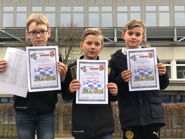 Der März war ein erfolgreicher Monat für unseren Verein, und besonders für drei unserer Jugendspieler. Am 3./4. März spielten Elias Cullmann, Patrick Ehrlich und Lysander Grimm eine gute Rolle bei der Rheinland-Pfalz-Meisterschaft U10 und U12 in Lahnstein. Elias erzielte in einem starken Teilnehmerfeld in der U12 50% der Punkte, Patrick holte aus den 7 Runden in der U10 4 Punkte und Lysander setzte mit 4,5 Zählern sogar noch einen drauf und eroberte Platz 8 unter 30 Teilnehmern. Alle Ergebnisse sind auf der Seite der Schachjugend Rheinland-Pfalz nachzulesen. Sehr erfreulich ist auch, dass Lysander und Patrick (wie übrigens auch Emil Bleisinger wegen seiner starken Ergebnisse in letzter Zeit) zum pfälzischen Kadertraining eingeladen wurden, so dass wir uns bald hoffentlich über drei neue Kaderspieler in unserem Verein freuen dürfen.