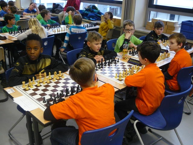 Die 3. Runde holte uns hart auf den Boden der Tatsachen zurück. Gegen die Grundschule Montessori Ingelheim setzte es eine 0,5:3,5-Niederlage. Ebenfalls zu hoch (Elias fiel in einer sehr guten Stellung auf einen gegnerischen Matttrick herein, Patrick konnte aus seinem gewonnenen Endspiel letztlich nur ein Remis erzielen), aber leider insgesamt nicht unverdient. Gott sei Dank ließen sich die Jungs davon nicht aus der Bahn werfen und fegten in der vierten Runde die Theodor-Heuss-Grundschule Ingelheim, mit vier Vereinsspieler besetzt, mit 4:0 aus dem Weg. Zur Schlüsselpartie entwickelte sich die 5. Runde und das Match gegen die Goethe-Grundschule Lahnstein, die mit David Meuer (DWZ 1363) den wertungsbesten Spieler des Turniers gemeldet hatte. Gegen ihn war für Elias ebenso wenig zu holen wie für seine übrigen Gegner – David gewann alle seine 7 Partien. Aber ein starkes Spitzenbrett erzielt eben auch nur einen Punkt, und die drei anderen Partien wurden von den Spielern aus Tiefenstein gewonnen. Bemerkenswert abgeklärt übrigens auch das taktische Verhalten der Kinder: Als Segadipa Magassa an Brett 4 ein Remisangebot erhielt, war es für ihn absolut selbstverständlich, bei Mannschaftsführer Elias nachzufragen. Dieser verschaffte sich erst einen Überblick über die Partien, dachte dann kurz nach und gab die Anweisung: „Spiel erst mal noch ein paar Züge weiter!“ Alles in der entscheidenden Phase eines wichtigen Turniers mit ohnehin schon hektischen Schnellpartien.