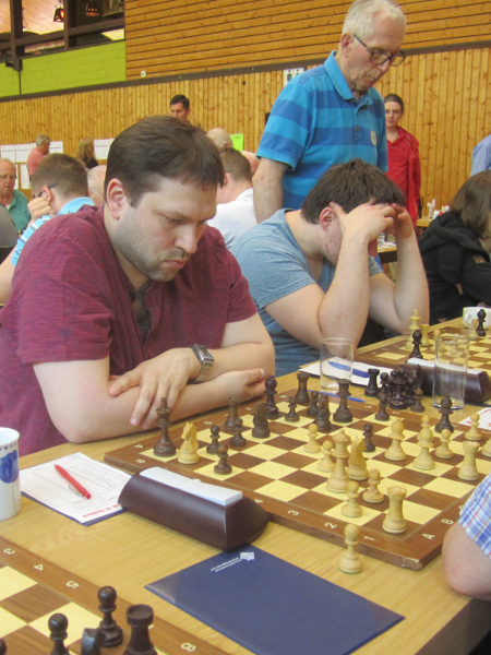 Der in dieser Saison zum ersten Male in der ersten Mannschaft aushelfende Mario Jacobs erledigte seine Aufgabe souverän. Nach einem Figurengewinn im Mittelspiel ließ er seinem Gegner keine Chance mehr. Da aber zwei weitere Partien an Brett 5 und 7 verloren gingen, mussten beim Stand von 3,5 zu 2,5 für Birkenfeld die letzten beiden Partien über den Ausgang entscheiden.