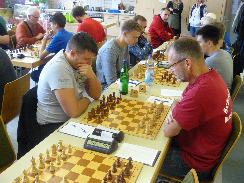 An dieser Stelle bleibt aber hinzuzufügen, dass der Gegner stark ersatzgeschwächt antrat und in vielen Partien einen großen Kampf ablieferte. Rudolf Meier erhöhte auf 2 zu 0. Der Senior sah sich im Turmendspiel mit zwei gefährlichen Zentrumsbauern seines Gegenüber konfrontiert, sein eigener Freibauer auf der c-Linie war aber zu schnell und konnte von seinem Kontrahenten nicht mehr aufgehalten werden. Ernst Michael Porcher belagerte schon früh mit schwarz den Königsflügel seines Gegners, im sich fortentwickelnden Königsangriff, in welchem der weiße König in die Brettmitte gewzungen wurde, ging sein Gegner schnell unter. Michael Hippenstiel konnte in der Eröffnung einen Bauern gewinnen, diesen Verlust konnte sein Widersacher nicht mehr kompensieren, wir führten nun 4 zu 0. An Brett 4 schaffte es der jugendliche Gegner von Maximilian Klein, das Spiel lange Zeit ausgeglichen zu gestalten. In einem remislich aussehenden Turmendspiel setzte sich dann aber doch die Routine von Maxi durch, dazu reichte ihm eine kleine Ungenauigkeit seines Gegners aus. Auch Mario Ziegler sah sich einer ernormen Widerstandskraft seines dwzschwächeren Gegners ausgesetzt, letzterer hatte in einem remislichen Endspiel eigentlich die bessere Leichtfigur, Mario schaffte es mit seinem König aber, hinter die feindlichen Linien zu gelangen, wonach der Beutezug seines Monarchen nicht mehr aufzuhalten war. Mit einem Bauernvorstoß im ausgehenden Mittelspiel schaffte es Mike Sidon, die Partie zu seinen Gunsten zu entscheiden. Der sehr umsichtig spielende Ramsteiner konnte die durch den Bauernvorstoß entstehenden taktischen Probleme nicht mehr lösen. Nach langem Kampf schafft es auch Niklas an Brett 3, seinen Gegner niederzuringen. Durch einen taktischen Trick gelang es dem Birkenfelder plötzlich, einen seiner Bauern unaufhaltsam in Bewegung zu setzen. Das war dann auch das 8 zu 0. Jedenfalls, wir freuen uns über einen gelungen Saisonauftakt, nach zwei Spielen nehmen wir erst einmal Platz 1 in der Tabelle ein.