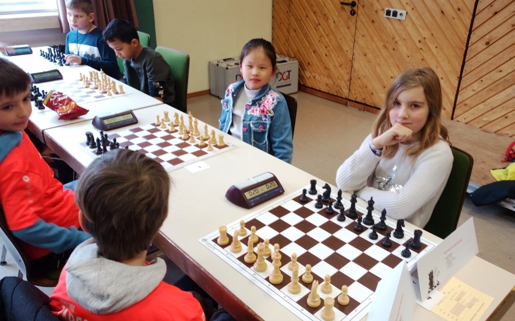Doch die Mannschaft machte es wirklich gut, gewann bereits in der 1. Runde ihr erstes Spiel gegen die Grundschule Hillesheim und landete am Ende mit dem ausgeglichenem Punktekonto von 7:7 auf Platz 11 unter 21 Mannschaften. Ein großartiges Ergebnis für das erste Turnier der jungen Nachwuchstalente, auf die nicht nur ich, sondern auch der stellvertretende Schulleiter Herr Gebel, der das Team zusammen mit mir betreute, sehr stolz war. Connor erzielte an Brett 2 sehr gute 50% (3,5 Punkte aus 7 Partien), Yanqi – die als Zweitklässlerin eine besondere Leistung gegen die meist zwei Jahre älteren Gegner vollbrachte – holte 4 Punkte aus 7 Partien, Nora 3 Punkte aus 5 Partien.