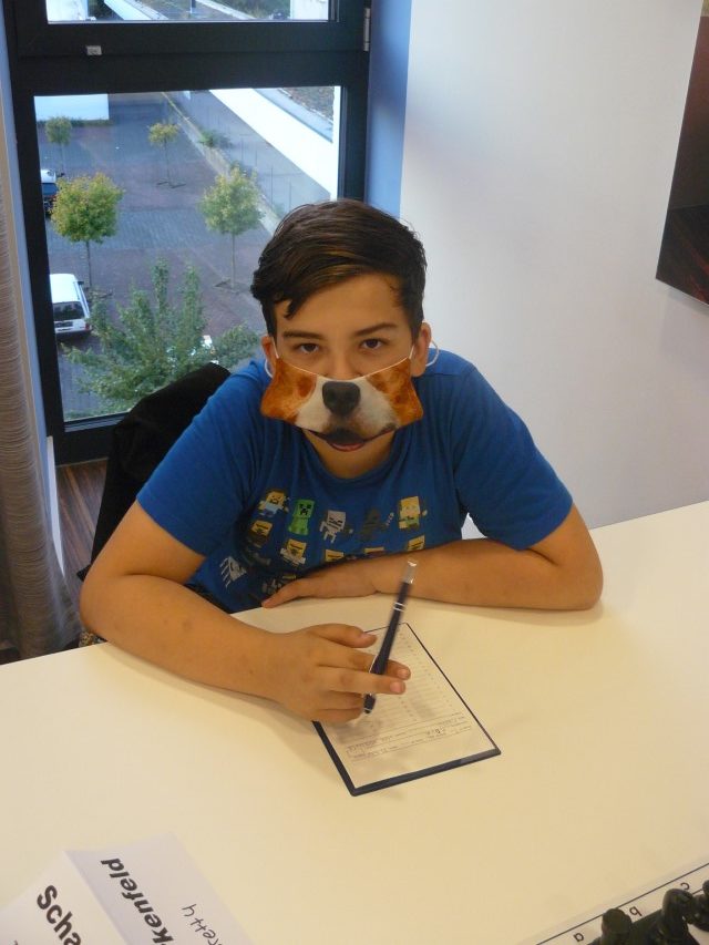Zum Sportlichen. Unser Team war an Platz 8 unter den 10 startenden Mannschaften gesetzt und landete am Ende exakt auf Platz 8. Wie so oft bei Jugendturnieren wechselten sich unverhoffte Höhenflüge mit unerwarteten Dämpfern ab, wobei das Ergebnis von 4:6 Mannschaftspunkten absolut den Erwartungen entspricht. Kurioserweise holten wir auch im vergangenen Jahr 4:6 Punkte, damals allerdings noch in der Altersklasse U12. Wenn man berücksichtigt, dass alle unsere Spieler auch im nächsten Jahr noch in der U14 spielberechtigt sein werden, stimmt das Resultat optimistisch für 2021. Diesmal war der erfolgreichste Punktesammler Zihao mit 4 Siegen an Brett 3. Er war auch maßgeblich am sportlich wertvollsten Resultat des Turniers beteiligt, einem 2:2 in der Auftaktrunde gegen den letztjährigen Mitteldeutschen Meister U12, SK Bad Homburg. Nachdem Elias und Leon gegen ihre favorisierten Gegner die Segel hatten streichen müssen und Patrick mit einem hübschen Königsangriff den ersten Birkenfeld Punkt erzielt hatte, gelang Zihao in einer Marathonpartie bis weit nach 23 Uhr der Ausgleich. Patrick konnte sich bei diesem Turnier für die Deutsche Jugendmeisterschaft einspielen, die Ende Oktober in Willingen stattfinden wird. Auch er wird mit seinem Ergebnis von 3 Punkten aus 5 Runden zufrieden sein, durch das er seine DWZ weiter verbessern konnte. Weniger erfolgreich schnitten Elias und Leon ab, was aber nach langer Turnierpause und unter den genannten erschwerten Bedingungen nicht überbewertet werden darf. Wichtig war zunächst einmal, dass nach mehr als einem halben Jahr Pause wieder an echten Schachbrettern gegen Gegner aus Fleisch und Blut gespielt werden konnte. Wir freuen uns alle schon auf die nächsten Turniere, die hoffentlich wieder etwas regelmäßiger stattfinden werden.