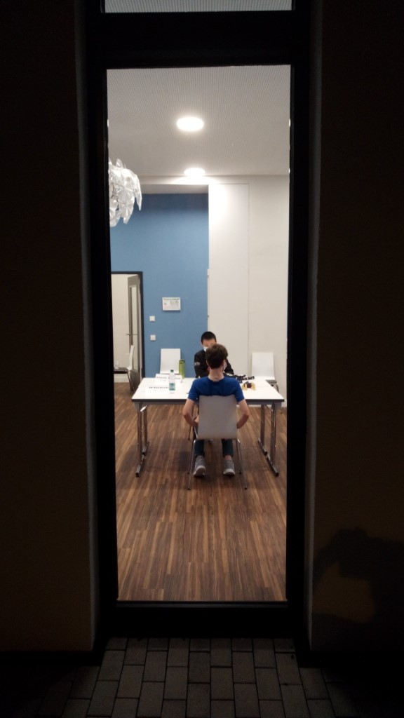 Austragungsort war die City Star Jugendherberge in Pirmasens, die Spielbedingungen waren – unter den gegebenen Bedingungen – hervorragend. Die Bretter waren großzügig auf mehrere Turnierräume verteilt, sodass zwar nicht alle Partien eines Matches im gleichen Raum ausgetragen wurden (und ich somit immer von Raum zu Raum wechseln musste), aber auf der anderen Seite die Spieler ungewöhnlich viel Platz hatten. Auch ansonsten wusste die brandneue Jugendherberge (eröffnet im April 2019) zu gefallen: Schöne Zimmer, eine gute Verpflegung, ein Spielplatz vor und einer im Haus. Das Organisationsteam (Mandy Kalina, Prof. Dr. Ludwig Peetz, Stefan Ritzheim, Mara Schlich und Marco Stegner – in alphabetischer Reihenfolge; ich hoffe, ich habe niemanden vergessen!) hat, soweit ich es beurteilen kann, großartige Arbeit geleistet.