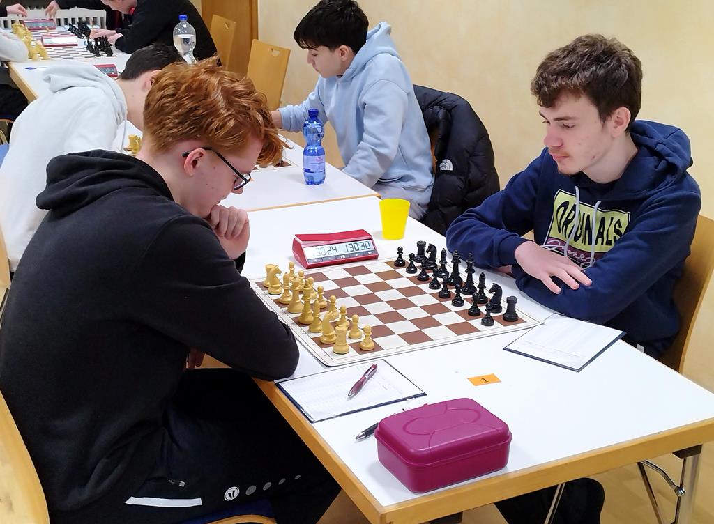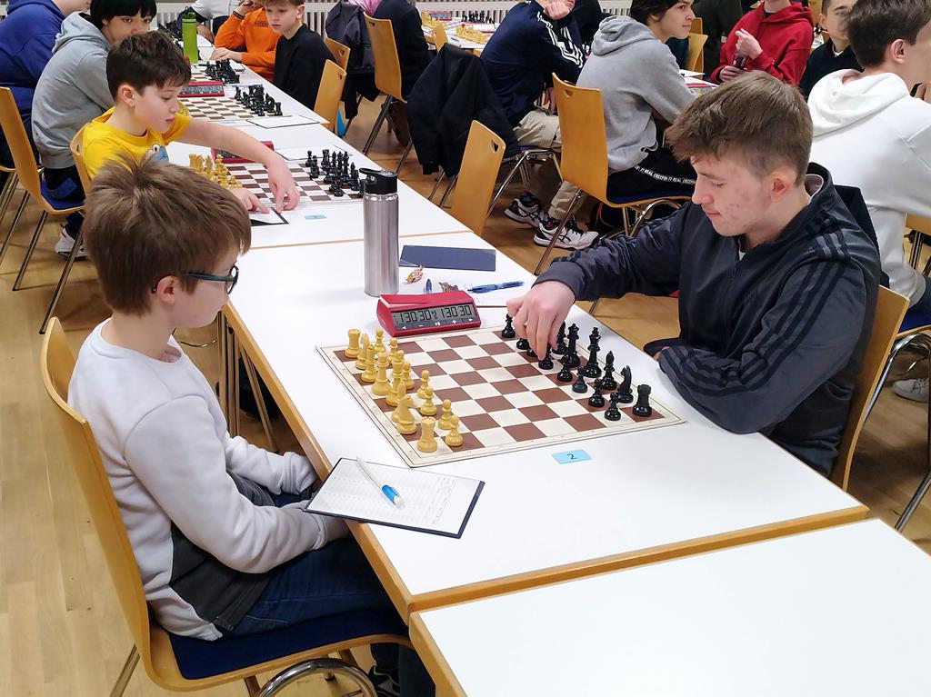Mit Patrick Ehrlich und Leon Wollscheid waren zwei weitere unserer Jugendspieler in der U16 vertreten. Beide landeten im hinteren Drittel (Patrick mit 3, Leon mit einem Punkt) und haderten insbesondere zu Beginn mit der Chancenverwertung. In der zweiten Hälfte des Turniers gelang es beiden, ihre Ergebnisse zu stabilisieren.