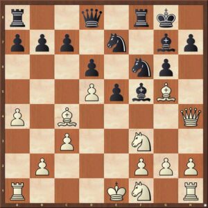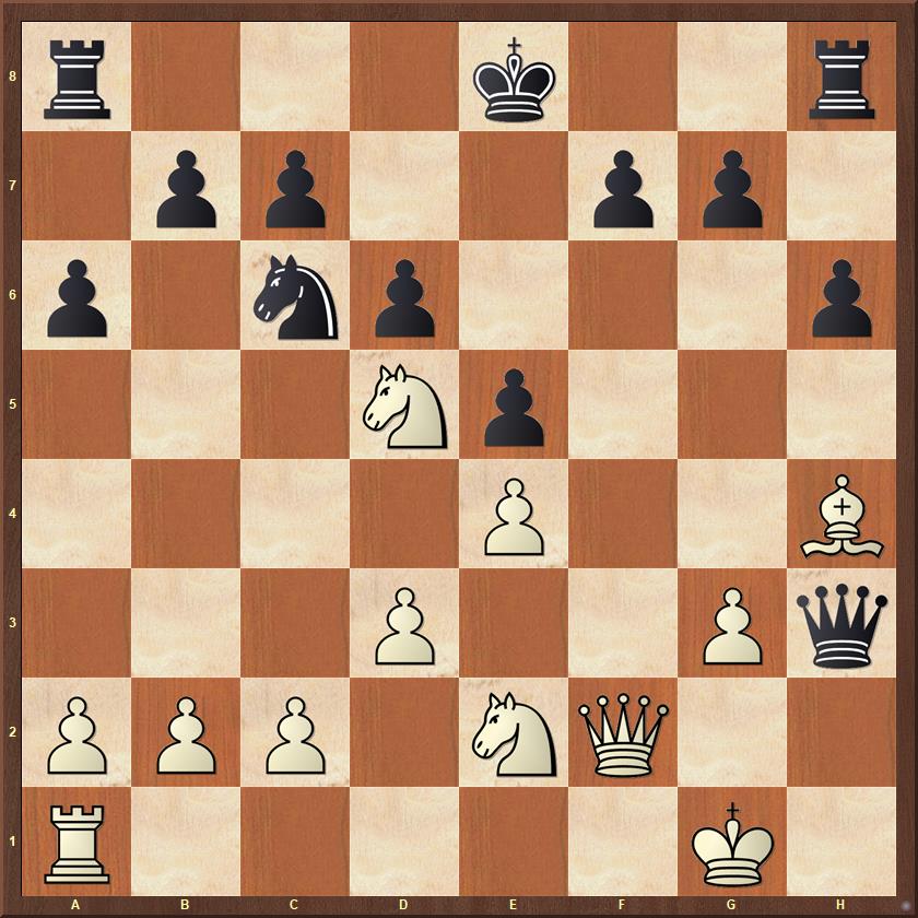 Nach 15…g5 steigt die Bewertung der Engine von +0.1 auf über +2.0 und man muss herausfinden warum.