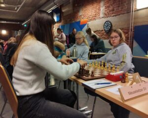 In den Runden danach merkte man, dass ein Turnier mit 7 Runden an 4 Tagen sehr anstrengend sein kann. Der mangelnde Schlaf und die langen Partien führen wohl oder übel zu Konzentrationsschwierigkeiten. Trotzdem konnte das Team 2,5:1,5 gegen den SV Werder Bremen gewinnen. Da diese krankheitsbedingt nur zu dritt antraten, führten wir bereits zu Beginn der Partien mit 1:0, wodurch die anderen ein wenig entspannen konnten. Im Endeffekt reichten drei Remis zum Mannschaftssieg. In der Nachmittagsrunde war es diesmal Emma, die durch einen unachtsamen Moment der Gegnerin ihre Partie gewinnen konnte. Durch die Remis von Eva und Helena, endete das Match gegen die SG Porz mit einem 2:2.